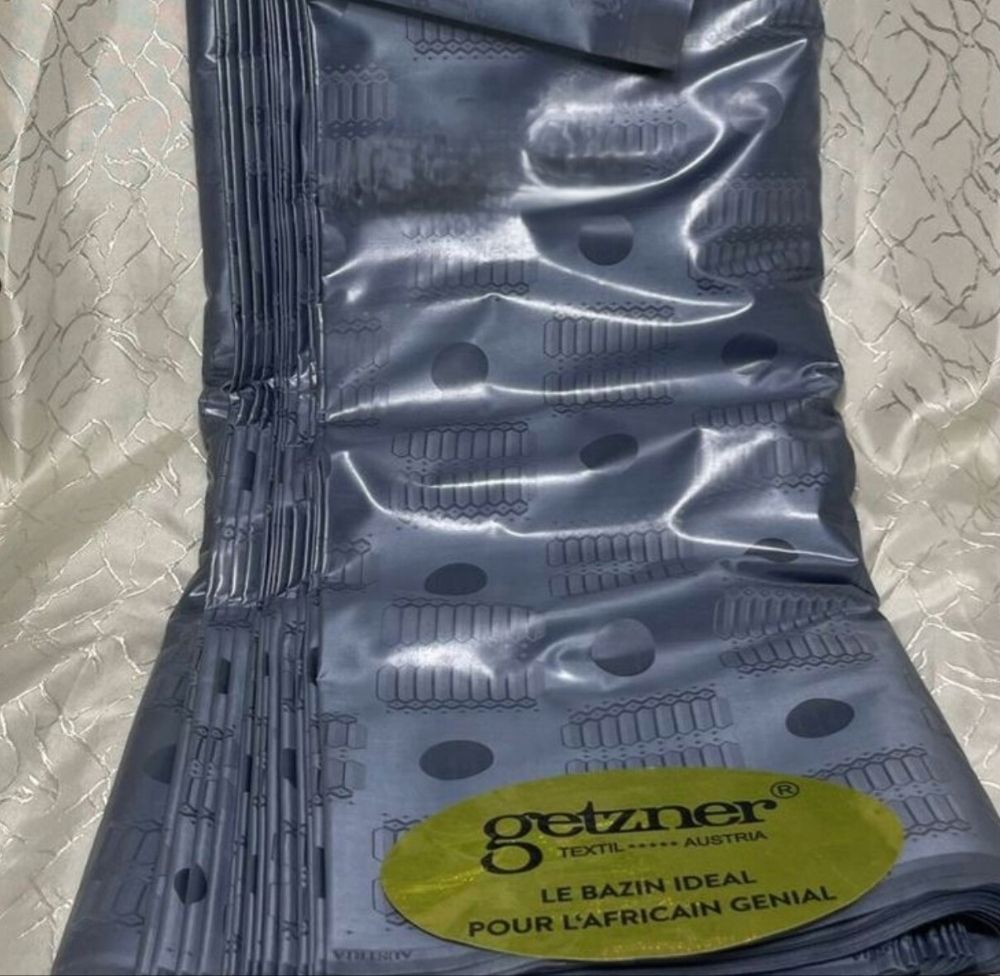 Bazin riche is a high-quality cotton fabric, traditionally waxed, with a glossy finish and rich colors. Its name literally means “rich fabric,” reflecting both its premium quality and luxurious feel.